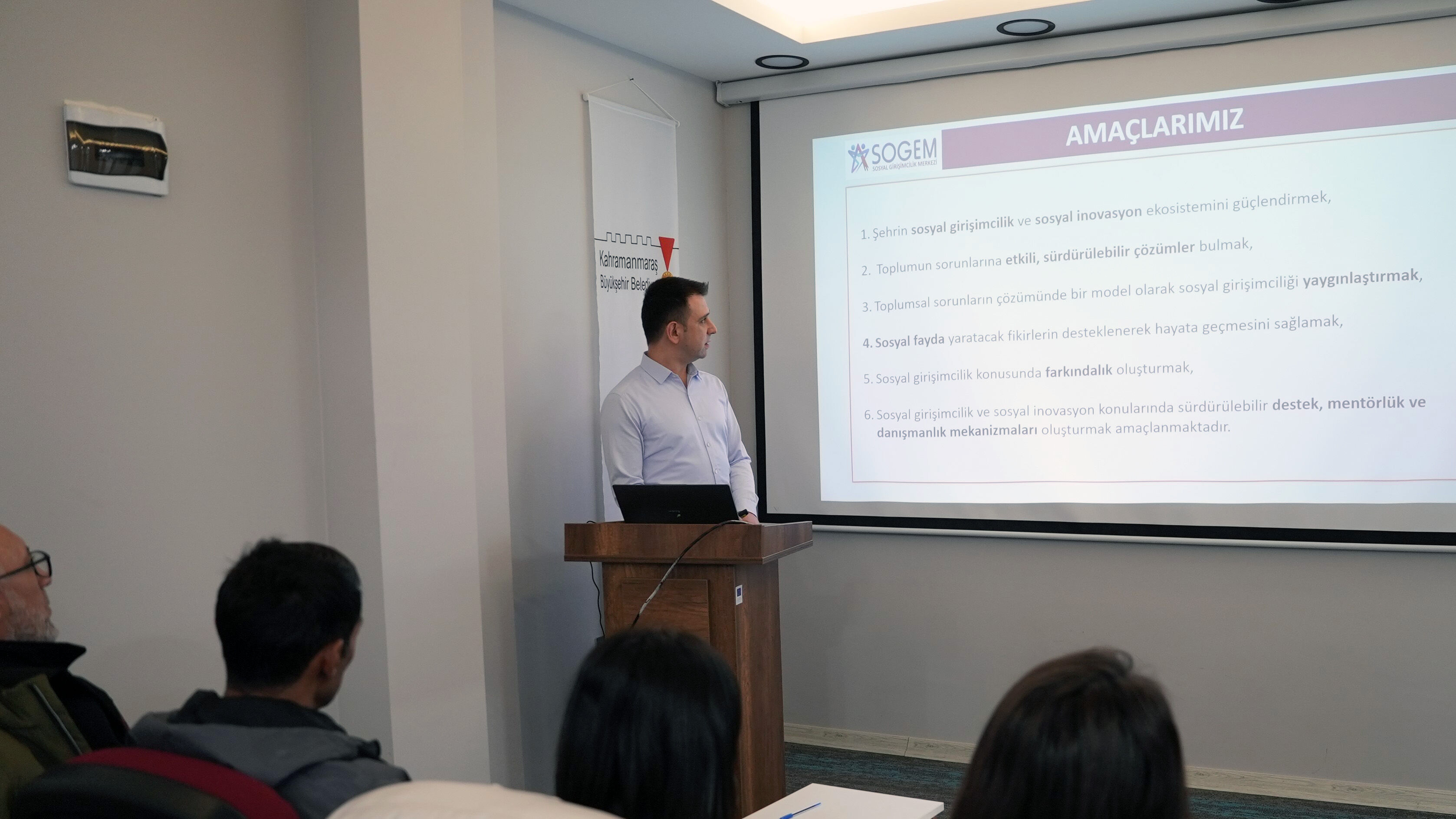 Kahramanmaraş Büyükşehir Belediyesi bünyesinde faaliyet gösteren Sosyal Girişimcilik Merkezi (SOGEM), şehirde sivil toplum kuruluşlarının proje üretme kapasitesini artırmak ve sosyal etki odaklı çalışmalarını güçlendirmek amacıyla yeni bir eğitim programını hayata geçirdi. İçişleri Bakanlığı Sivil Toplumla İlişkiler Genel Müdürlüğü tarafından ilan edilen 2026 Yılı Proje Destek Programı kapsamında düzenlenen eğitimler, “Sosyal Girişimciliğin Desteklenmesi” temasıyla dikkat çekiyor.