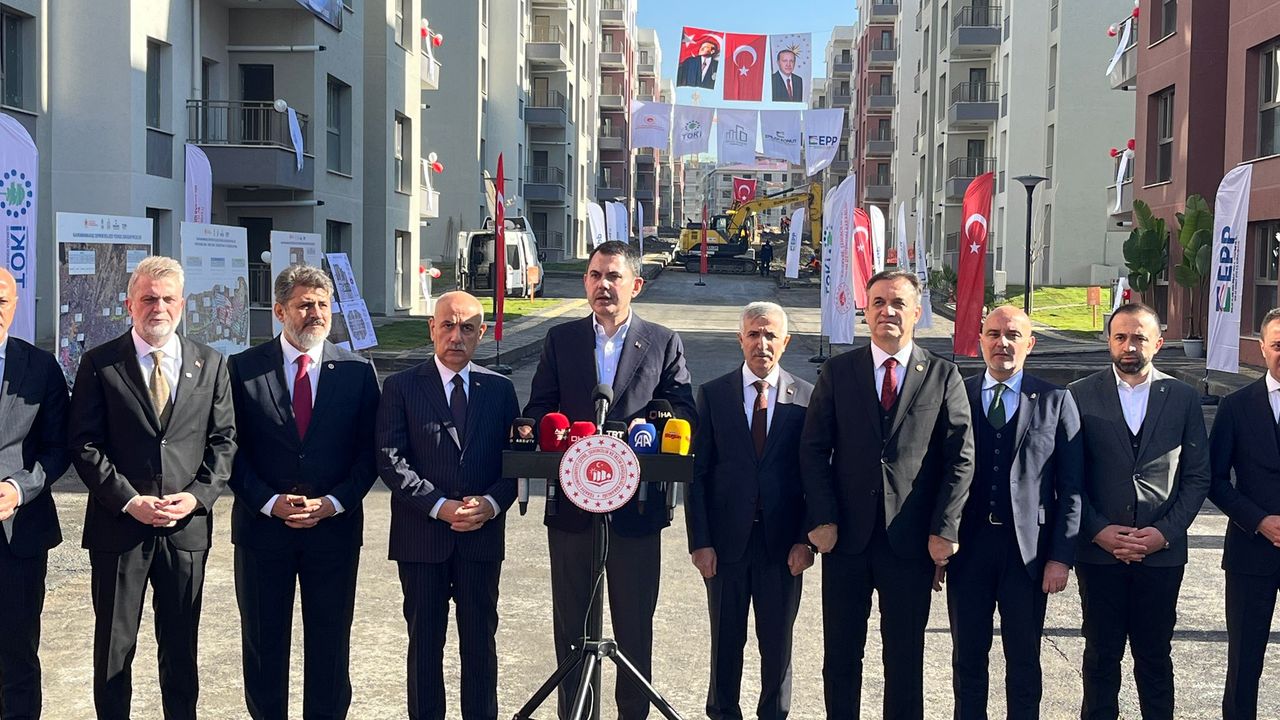 On ay önce başlatılan inşaatların hızla tamamlandığını söyleyen Bakan, konutlar, iş yerleri, parklar, yeşil alanlar ve sosyal donatılarla yeni yaşam alanlarının oluşturulduğunu ifade etti.