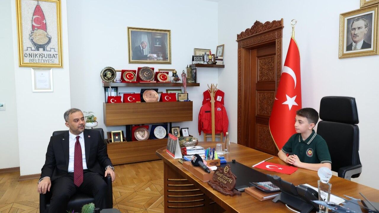 Onikişubat Belediye Başkanı Hanifi Toptaş, makam koltuğunu Şehit Ahmet Gülbahar Ortaokulu 5’nci sınıf öğrencisi Halil Sami Kulotu’ya devretti.