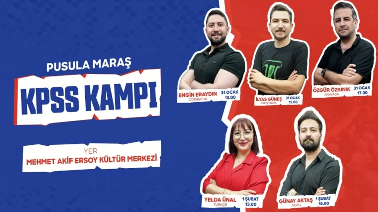 Kamu personeli olma hedefiyle KPSS’ye hazırlanan gençler için ise 31 Ocak ve 1 Şubat tarihlerinde özel bir kamp programı düzenlenecek. Yine Mehmet Akif Ersoy Kültür Merkezi’nde gerçekleştirilecek KPSS Kampında; Engin Eraydın, İlyas Güneş, Özgür Özkınık, Yelda Ünal ve Günay Aktaş katılımcılarla buluşacak. KPSS Kampı kapsamında uzman isimler tarafından coğrafya, matematik, anayasa, Türkçe ve tarih branşlarında detaylı anlatımlar yapılacak; sınavda sıkça çıkan konular, püf noktalar ve zaman yönetimi gibi başlıklarda gençlere rehberlik edilecek.