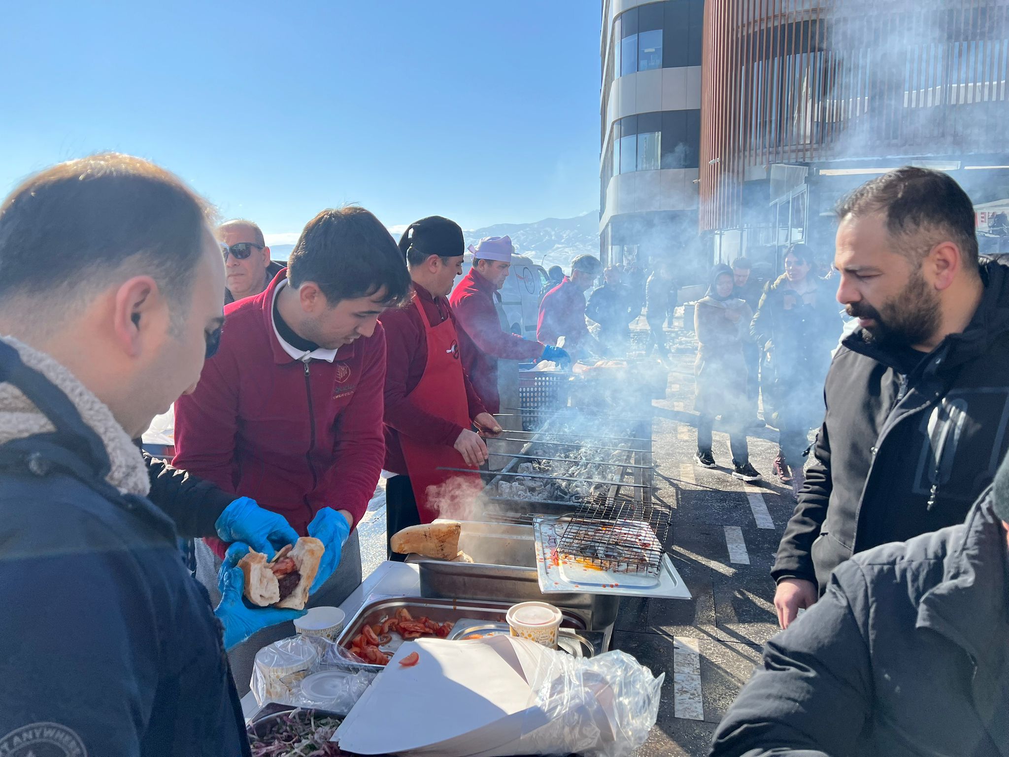 HG Hospital yönetimi tarafından düzenlenen sosyal etkinlikte; hastanede görev yapan doktorlar, sağlık çalışanları, hasta yakınları ve ziyaretçilere sucuk ekmek ikram edildi.