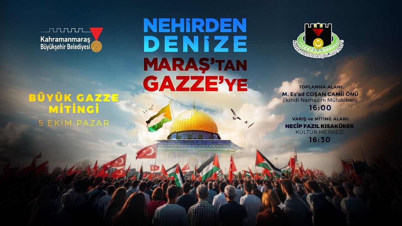 Kahramanmaraş Büyükşehir Belediyesi, toplumsal ve insani konulara duyarlılığını sürdürerek önemli bir etkinliğe daha imza atıyor. Bu kapsamda, Kahramanmaraş Platformu iş birliğiyle 5 Ekim Pazar günü “Büyük Gazze Mitingi” gerçekleştirilecek. “Nehirden Denize, Maraş’tan Gazze’ye” temasıyla düzenlenecek yürüyüş, saat 16.00’da Mahmut Es’ad Coşan Camii önünden başlayacak. Yüzlerce vatandaşın katılımıyla gerçekleştirilecek yürüyüş, Necip Fazıl Kısakürek Kültür Merkezi’nde sona erecek. Burada Gazze’ye destek amacıyla çeşitli etkinlikler düzenlenecek. Büyükşehir Belediyesinden yapılan açıklamada, tüm vatandaşlar mitinge davet edilerek, birlik ve dayanışma vurgusu yapıldı. Açıklamada, “Gazze’de yaşanan insanlık dramına dikkat çekmek için tüm hemşehrilerimizi bu anlamlı yürüyüşe katılmaya davet ediyoruz” denildi.