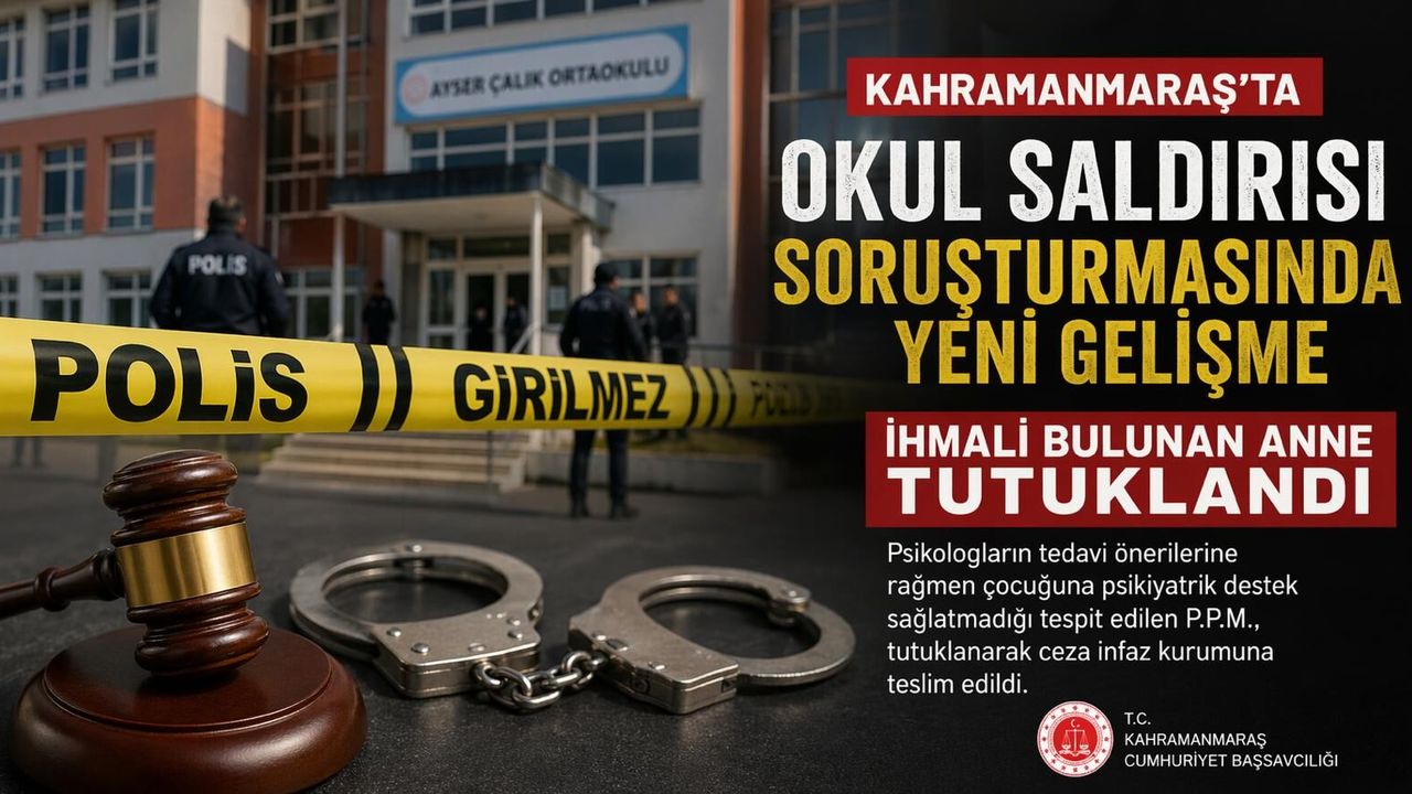Kahramanmaraş’ta 15 Nisan 2026 tarihinde Onikişubat ilçesi Haydarbey Mahallesi’nde bulunan Ayser Çalık Ortaokulu’nda meydana gelen silahlı saldırıya ilişkin yürütülen soruşturmada yeni bir gelişme yaşandı.