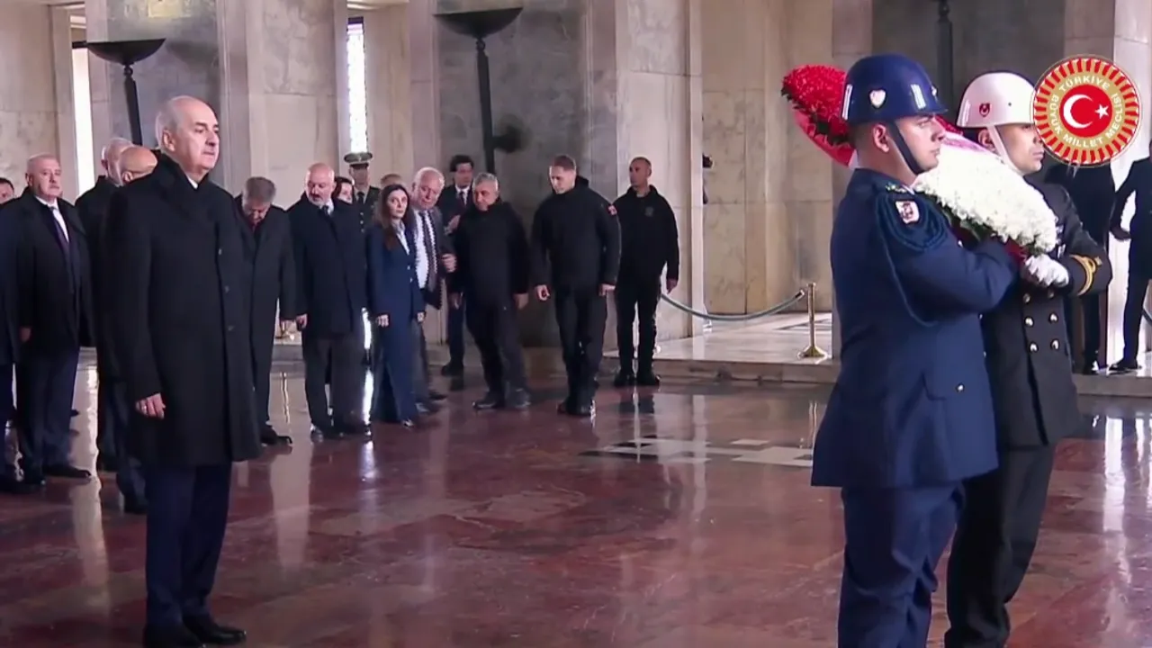 TBMM Başkanı Numan Kurtulmuş'un, Atatürk Anıtı'na kırmızı ve beyaz karanfillerden oluşan çelenk bırakmasının ardından saygı duruşunda bulunuldu, İstiklal Marşı okundu.