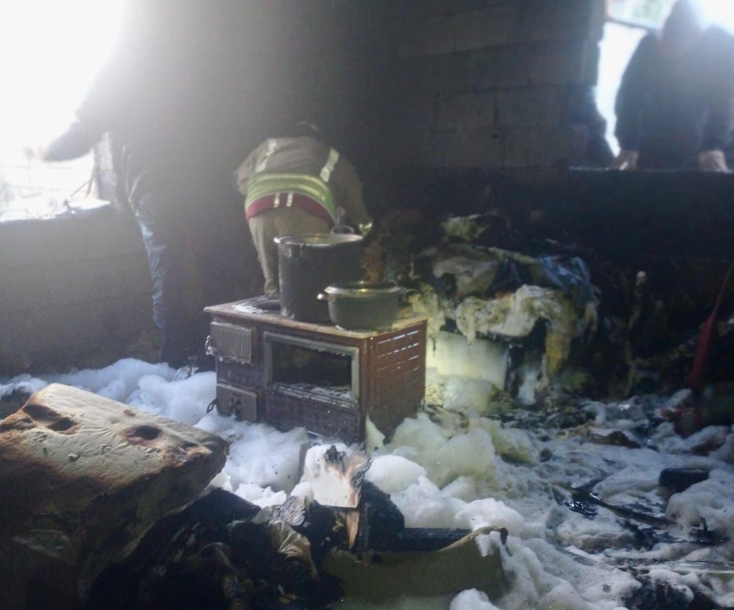 Yangında evde büyük çapta maddi hasar meydana gelirken, olayla ilgili inceleme başlatıldı.
